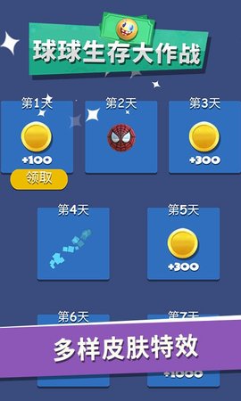 3、上线签到就能获得大量的奖励和金币。丰厚的每日登录奖励让玩家能够持续获得游戏资源,解锁更多有趣的球球皮肤和特效。