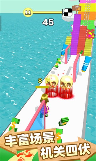 游戏最大的亮点在于其丰富多样的玩法设计,每个关卡都经过精心打造,带来截然不同的跑酷体验。玩家可以探索数十种独特的升级路线,通过反复挑战来解锁隐藏内容。场景中设置了大量动态障碍物,需要玩家保持高度专注才能顺利通过。游戏还创新性地加入了策略元素,不同关卡设有特殊目标,比如在限定时间内收集特定道具,或是保持年轻状态通过特定区域。角色造型系统也是一大特色,玩家可以解锁各种服饰、发型等外观元素,打造个性化的跑酷形象。这些特色内容相互配合,共同构成了这款游戏的独特魅力。