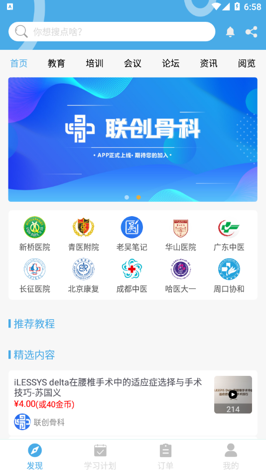 联创骨科致力于构建一个全方位的骨科医生学习生态系统。平台不仅提供系统化的专业培训课程,还整合了最新的行业资讯和活跃的学术论坛。通过文献数据库、高清视频课程等多种形式,全面展示骨科领域的前沿技术和临床经验。平台定期更新内容,确保医生能够获取最新、最权威的学术资源,满足不同层次医生的学习需求。