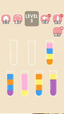 欢乐水排序是一款休闲益智游戏,其中采用了q版的亮色画面风格,玩家在这里可以感受到更好的视觉体验。简单易用的操作方式让玩家可以随时随地玩。游戏准备了多种关卡供玩家挑战。