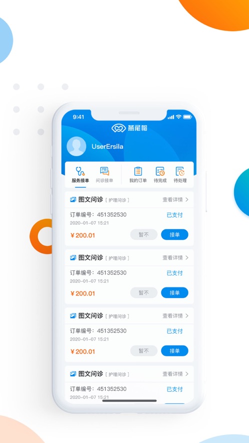 燕尾帽医护版app是一款专为医护人员打造的智能化接单与管理平台,致力于提升医疗服务的便捷性与专业性。通过整合护理上门、预约接单、患者沟通等核心功能,该应用为护士、护工等医疗从业者提供高效的工作支持。无论是紧急护理需求还是日常健康管理,医护人员都能通过简洁的操作界面快速响应订单,实现服务流程的数字化管理。平台还融入实时咨询、服务追踪等实用模块,让医患沟通更顺畅,让护理服务更精准。