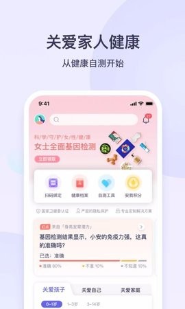 1、您可以在线探索身体基因的奥秘,不仅能了解人类起源的历史,还能获取个性化的基因解读报告,让科学知识变得通俗易懂。2、专为产后女性设计的健康管理模块,提供科学的恢复方案和保健建议,从饮食调理到运动指导,全方位助力产后康复。3、护肤爱好者可以在这里发现优质产品推荐,平台汇集了众多用户的真实使用体验,帮助您找到最适合自己肤质的护理方案,告别盲目尝试。