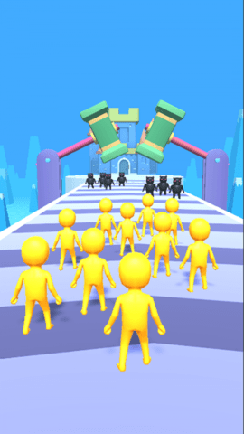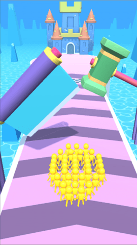 突破障碍,打败路上的所有人,收集硬币并升级。