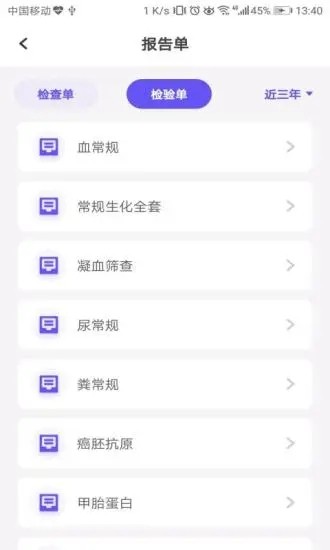 报告单:检验检查报告实时推送,支持图文报告放大查看,异常指标自动标注,提供专业解读建议;
