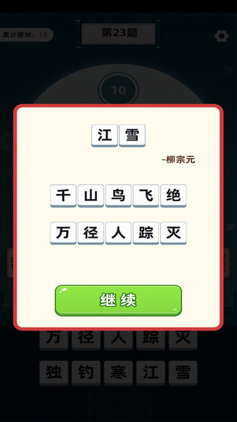 每个关卡都设置了提示机会,玩家可以根据需要灵活使用。合理利用提示功能可以帮助克服难关,同时也能学到更多诗词知识;