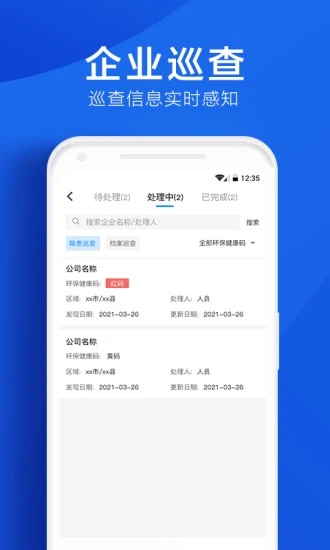 【安全巡查】提供标准化巡查流程管理,支持GPS定位、照片上传、电子签名等移动办公功能。系统可自动生成巡查任务清单,记录巡查轨迹,确保每个环节可追溯。同时建立企业环保档案,实现"一企一档"精细化管理,帮助企业持续改进环保措施。