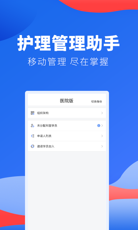 2、能够随意的切换身份,帮助你更好的进行管理,获得更多的帮助。多角色权限管理系统支持护理部主任、护士长、带教老师、护士等不同身份切换,各角色工作界面和功能权限智能适配。