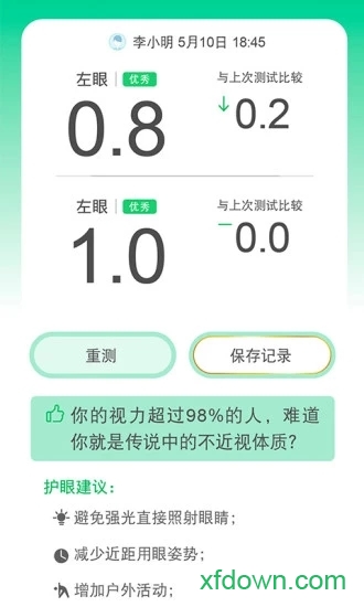 智能对比算法能发现0.1度的视力变化,自动生成可视化趋势图表和健康建议
