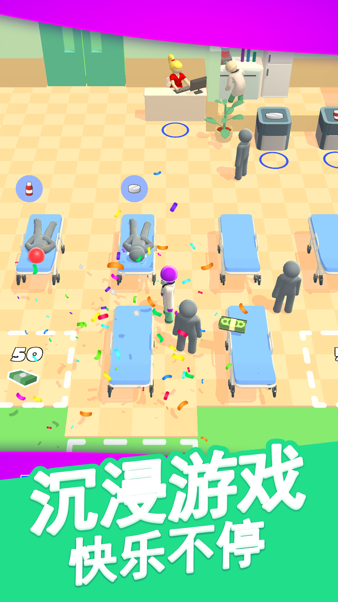 《卧床模拟器》是一款充满挑战与乐趣的医院模拟经营游戏。在这个虚拟的小镇上,你将扮演一位医院管理者,从零开始建设并经营自己的医疗机构。游戏的核心玩法围绕着诊断和治疗病人展开,你需要根据每位患者的不同症状,精准调配药物并提供合适的治疗方案。随着游戏的深入,你将面临各种突发医疗事件和特殊病例的挑战,考验你的决策能力和资源管理技巧。成功治愈病人不仅能带来经济收益,还能提升医院声誉,吸引更多患者前来就诊。