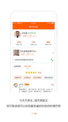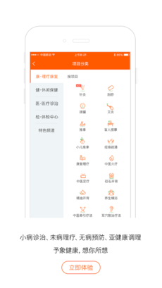 予象健康为用户提供全面的医疗服务信息,包括小病诊治、未病理疗、亚健康调理以及疾病预防等,详细展示各类服务提供商的商户信息及专业医师、理疗师的个人资料;