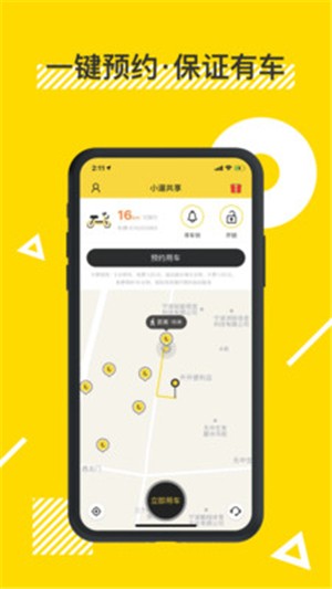 1.车辆定位:地图显示附近可用车辆,支持导航,可查看车辆具体位置和剩余电量。