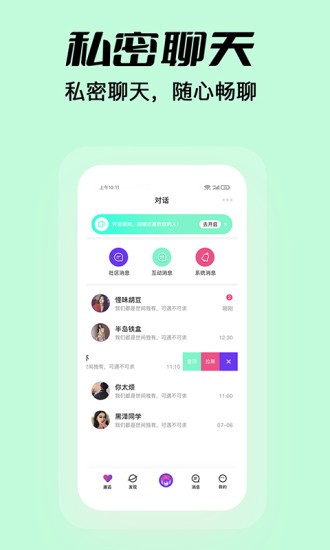 【随时随地私密聊天】夜逅提供流畅的私密聊天功能,支持文字、语音、图片等多种交流方式。你可以与匹配到的对象尽情唠嗑,分享兴趣与观点,让每一次对话都充满趣味和深度。