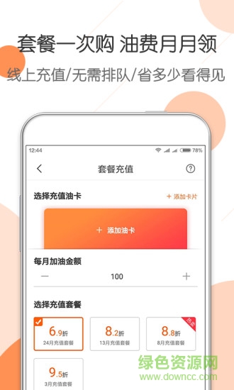 【车主加油】-可根据每年加油量选择合适套餐,加油省钱高达10%;每月定期充值到加油卡,全国各地任意刷卡加油;系统会根据用户的加油习惯和行驶路线,智能推荐最优加油站点和时间,避开高峰期更省钱。