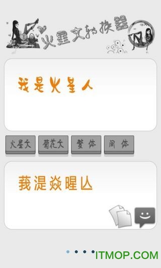 手机版火星文转换器是一款专为追求个性化的用户打造的创意文字工具。这款软件能够将普通文字一键转换为各种趣味字体,包括火星文、菊花文、繁体字等,让你的社交表达与众不同。操作界面直观友好,只需简单几步就能完成文字转换,转换结果还能直接复制或分享给好友。无论是想给聊天增添趣味,还是想让社交动态更吸睛,这款软件都能满足你的需求。目前可在IT猫扑平台免费下载体验。