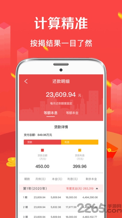 ·计算功能:支持42种特殊场景计算(如提前部分还款、商转公组合贷等),计算结果精确到0.01元。独创"3D还款图谱"直观展示利息构成,支持导出PDF格式的详细计算书用于银行面签。