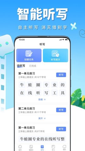 牛蛙圈app是一款非常棒的学习教育平台。 牛蛙圈app拥有丰富的学习资源,各种听写题目能为孩子提供非常方便的在线学习,由浅入深,循序渐进,让学生能够更好的巩固知识积累。
