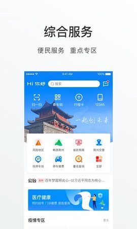 疫情服务、医疗保健、文化旅游、交通、便捷查询等。