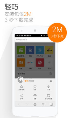 如果你想使用体积小、品牌大的浏览器,建议你现在就使用猎豹浏览器!猎豹浏览器手机版只有最简单的流量节省功能和互联网功能!来试试吧!我希望你能喜欢!