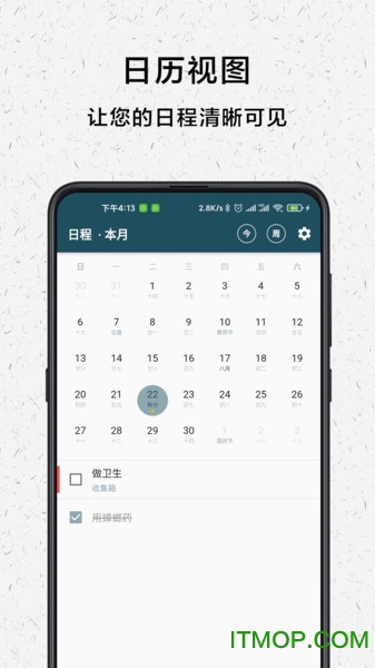 日历视图:直观展示您的日程安排,支持按日、周、月查看计划,还能订阅第三方日历服务,实现更全面的时间管理。
