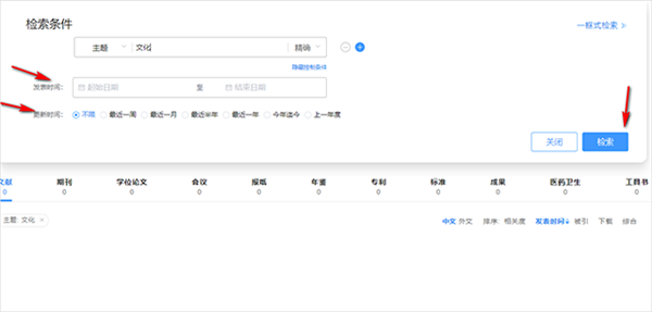 5、设置好文献的发表时间范围、更新时间等条件后,点击"检索"按钮执行搜索操作;