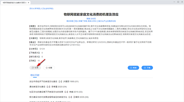 7、进入文献详情页后,在左侧功能区域找到并点击"引用"按钮;