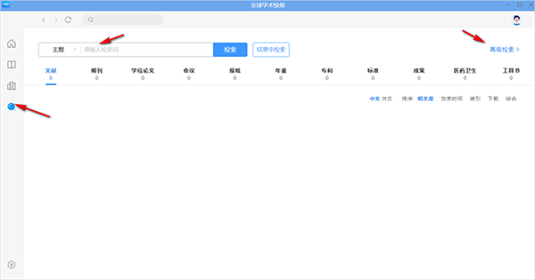 3、如需精确查找,可点击左侧的搜索图标,在出现的搜索框中输入关键词,若需要更精准的检索条件,可点击右侧的"高级检索"按钮进行详细设置;