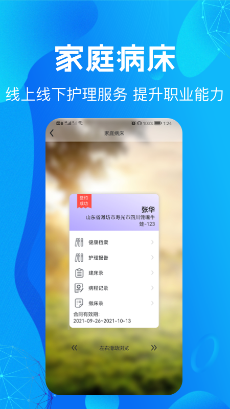 【线上签约服务】护理人员完成资质认证后,可与患者建立长期服务关系。通过APP的智能评估系统,护理人员可远程为签约客户提供专业护理指导,制定个性化护理方案,并定期跟踪服务效果。系统支持图文咨询、视频指导等多种沟通方式,确保远程服务的准确性和及时性。