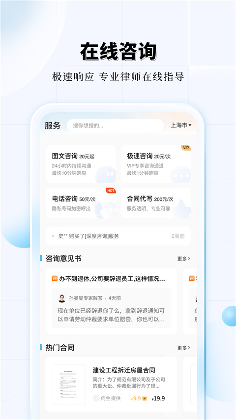1、快速咨询:平台采用智能匹配系统,用户发布问题后,系统会自动匹配合适的律师进行解答。平均响应时间仅需1秒,确保用户能够及时获得专业法律意见。