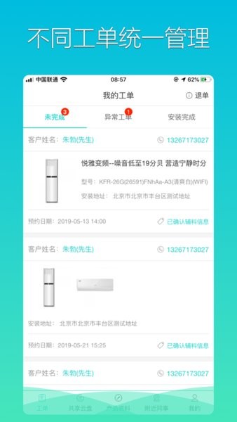 该应用允许用户随时进入“我的工单”页面,查看所有工单的详细信息。不同状态的工单会进行清晰分类,使查找过程更加便捷高效。用户还可以直接查看已完成的工单信息,便于后续跟进和总结。这些特色功能大大提升了安装工人的工作效率和服务质量。