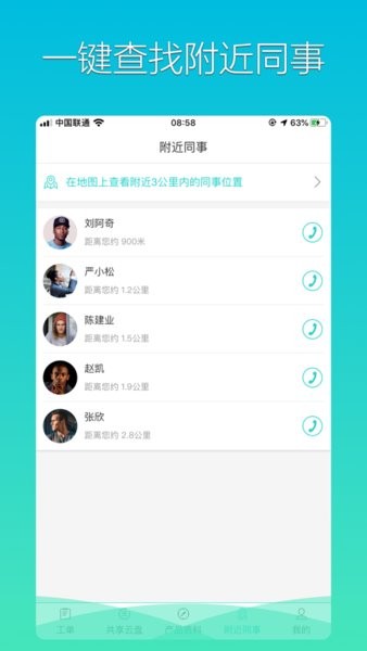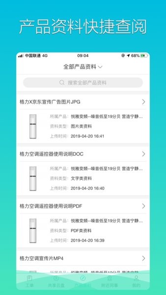 格力荟安装工app提供流程化工单管理功能,使服务流程更加顺畅高效。用户可以轻松查询和管理最近的工单,为客户提供专业的安装和维修售后服务。此外,app还支持通过地图查找附近的同事,方便协作与沟通。用户还可以查看和下载共享云盘中的资料,快速搜索产品信息,确保工作顺利进行。