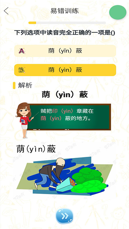 2. 巧记易错字词。针对中小学生常见的错别字问题,开发了独特的联想记忆法。每个易错字都配有形象生动的记忆口诀和漫画图解,帮助学生从根本上理解字词结构,避免重复犯错。