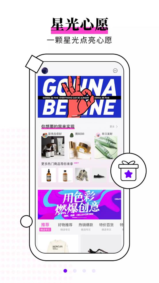 【星光许愿】一颗星光,许下你的潮流心愿,与平台百万用户一起见证梦想成真。无论是限量球鞋还是潮流单品,这里都能帮你实现愿望。