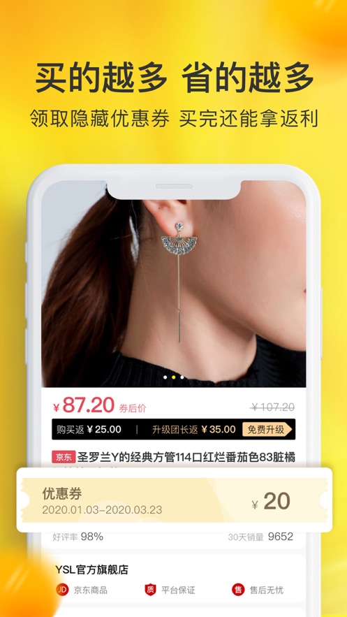 鲸选师是一款专业的导购APP,致力于为用户提供最优惠的网购体验。平台通过大数据分析,精选全网优质且价格实惠的商品,涵盖服饰、数码、家居、美妆等全品类。除了整合淘宝、京东、苏宁、唯品会等主流电商平台资源外,还接入了美团、饿了么、携程、团油等本地生活服务平台,打造一站式购物生活圈。专业的买手团队24小时筛选特惠商品,确保用户能以最低价格购买到正品好货。