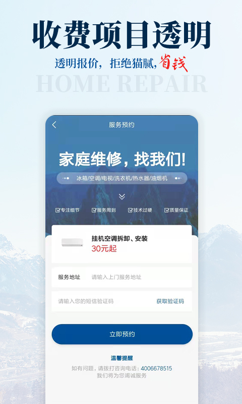 啄木鸟家修汇APP是一款专业可靠的家庭维修服务平台,致力于为用户提供便捷高效的维修解决方案。通过该软件,用户可一键预约各类家庭维修服务,享受快速上门的贴心体验。平台覆盖全国2200多个县市,提供95种维保服务品类,从防水补漏到家电维修一应俱全。凭借专业的服务团队、透明的收费标准和便捷的线上预约功能,啄木鸟家修汇已成为千万家庭信赖的维修服务选择,让您的家居问题轻松解决。
