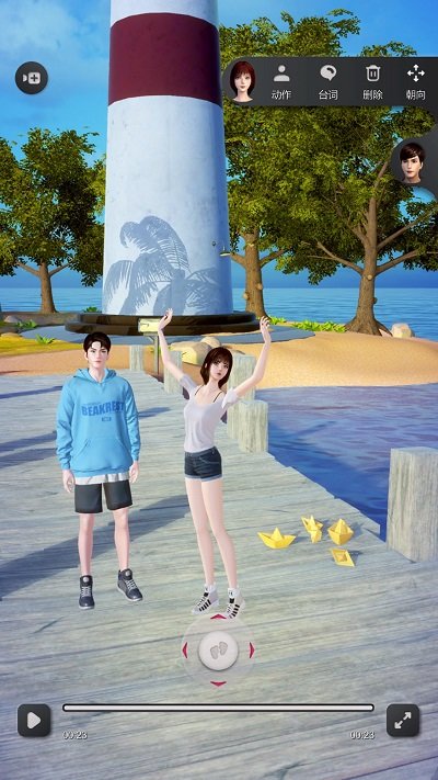 绯色天空下的小岛,等你探索,每一个角落都可以拍摄你的剧情创意。全新升级的场景编辑器支持自定义光照和天气效果,让同一个场景能呈现昼夜交替、四季变换的不同风貌。精心打磨的场景效果,成为你想象力的舞台。新增"场景融合"功能,可将多个场景元素自由组合,创造出独一无二的拍摄场地。更有实时物理引擎模拟真实物体互动,让虚拟场景中的每一个细节都栩栩如生。
