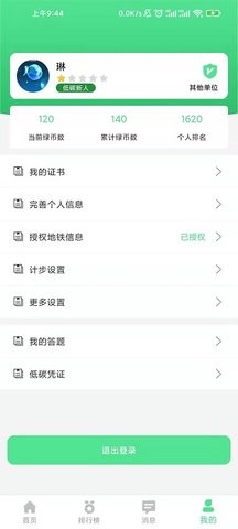 完善的积分体系包含绿币总数统计、日排行等功能,通过步行等低碳行为获取奖励,激发用户的环保积极性。