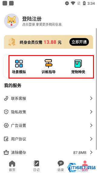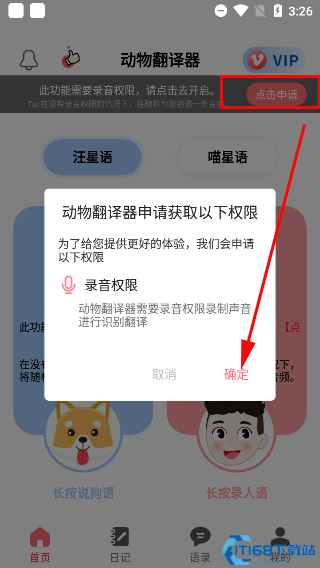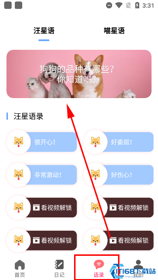 1、首次使用需要授权手机录音权限,进入软件后点击右上角图标完成权限设置。2、在人语框中长按录音按钮即可录制声音,松开后系统会自动将人声翻译成"喵星语"或"汪星语"并播放。同样地,录制宠物叫声也能翻译成中文。3、软件内置丰富的宠物语录库,点击"语录"可选择常用猫狗语音,更多高级语录需观看广告或开通VIP解锁。4、为提升用户体验,软件还提供场景模拟、训练指导、宠物分类等实用功能。5、训练指导功能由专业训宠师设计,提供科学有效的训练方案,帮助用户更好地培养宠物行为习惯。
