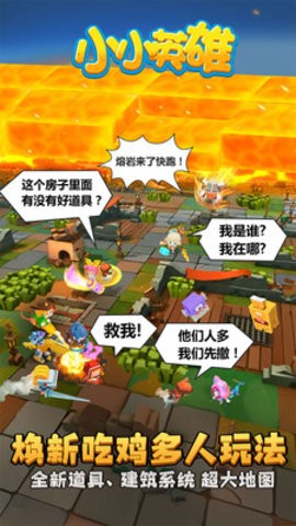 1、《小小英雄》以清新可爱的乐高画风重新定义了大逃杀游戏,将吃鸡玩法与MOBA元素巧妙融合,带来前所未有的竞技体验。游戏中每个英雄都拥有独特的技能组合,玩家需要根据战场形势灵活切换战术。