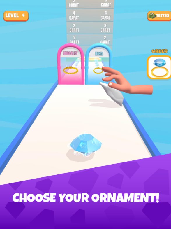 1、游戏采用渐进式难度设计,随着等级提升,你将面对更复杂的钻石加工流程和更严苛的时间限制,每个新关卡都带来全新挑战。