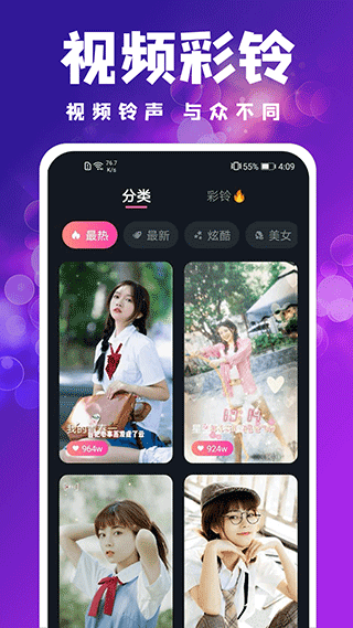 【热门流行】软件内置海量精选来电动画资源,包含唯美可爱、小清新、帅哥美女、萌宠、卡通动漫等多种风格,更有最新网络神曲实时更新,让您的来电显示永远走在潮流前沿。所有资源都经过专业筛选,确保品质上乘,满足不同用户的个性化需求。