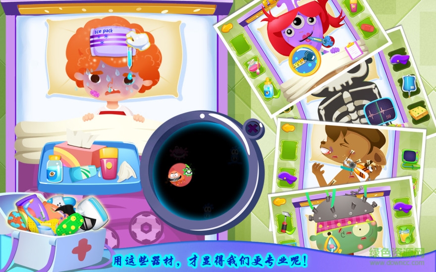 -生动有趣:有趣的治病游戏,给宝宝最丰富有趣的医院体验。治疗过程中加入了各种互动小游戏,比如给伤口消毒、包扎绷带等,让医疗过程变得轻松愉快。