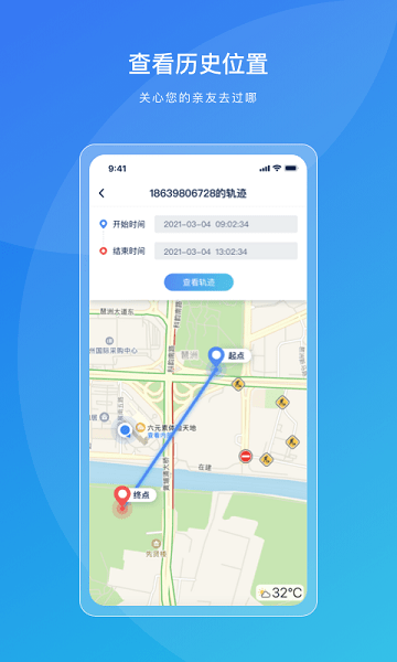 通过使用签到按扭告知圈子成员您的精确位置寻迹功能。支持手动位置上报,可附加文字备注和照片,让家人更清楚您的具体情况。