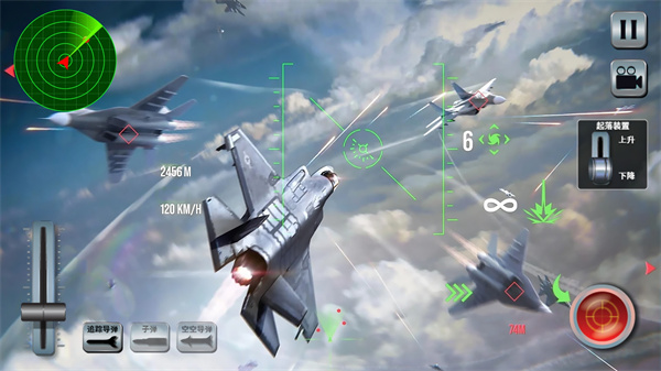 本作堪称移动端最真实的空战模拟器,收录了F-22猛禽、苏-57等50余款现役主力战机,每架战机都经过军工专家指导精确还原气动特性。游戏采用动态天气系统和物理碰撞引擎,云层流动、气流扰动等细节都会影响飞行操作。玩家不仅能体验超音速巡航的快感,还能在座舱视角下操作雷达锁定、导弹发射等专业流程,感受现代空战的科技魅力。特别设计的飞行员成长体系,让玩家从菜鸟逐步晋升为具备战术指挥能力的飞行中队长。