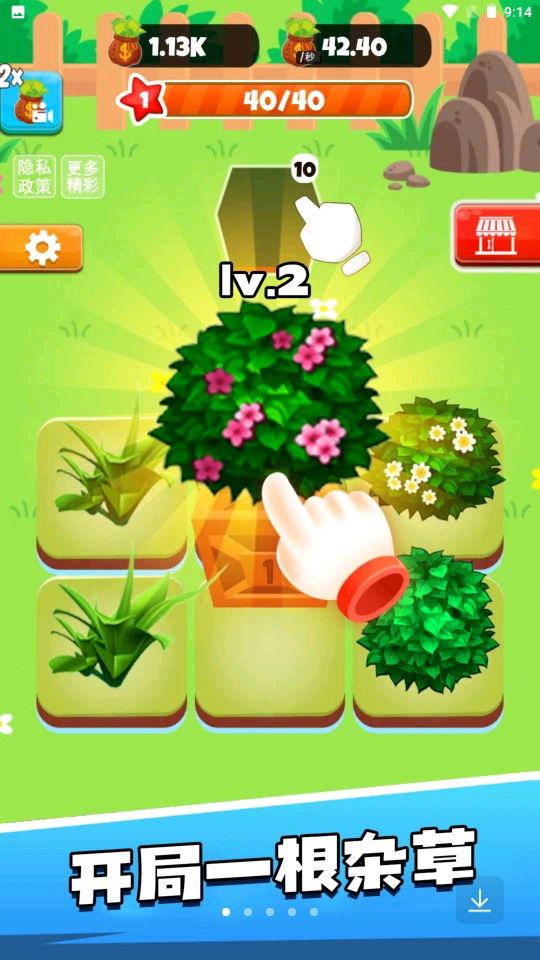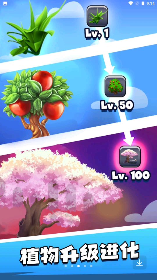 1、轻松好玩的放置玩法,各种各样的植物任你选择,去不断的升级。游戏采用简单的点击操作,即使是新手也能快速掌握要领。