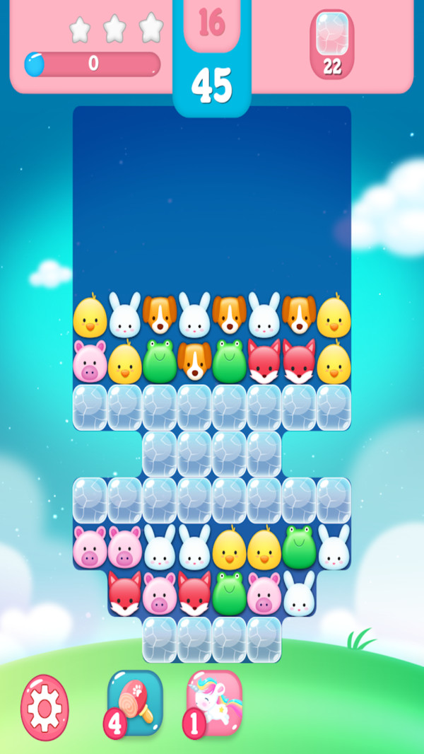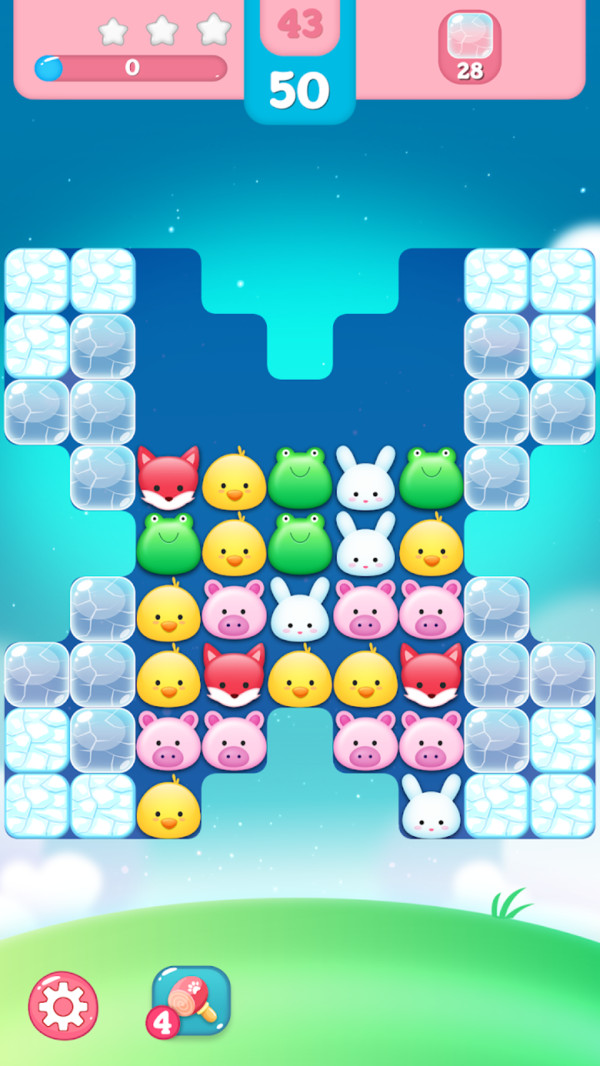 3、每关都有明确的消除目标,可能是清除特定数量的某种动物,或是达到规定分数。注意观察关卡布局,优先消除障碍物如冰块或锁链,它们会限制动物移动。