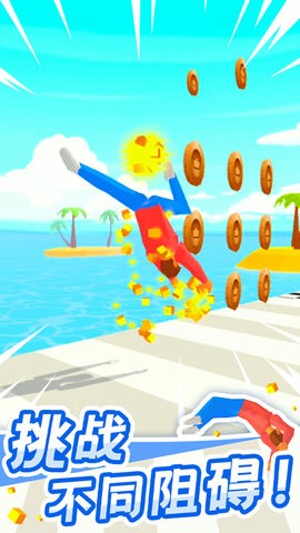 本作将动作技巧与策略思考完美结合,玩家需要根据地形特点调整翻越力度和角度。随着关卡深入,会出现移动平台、弹性跳板等特殊地形,要求玩家在体力耗尽前完成连续空翻组合动作。游戏特别设计了20种不同风格的场景地图,从阳光沙滩到城市屋顶,每个场景都配有独特的物理特性。通过完成每日挑战任务,玩家还能解锁炫酷的角色皮肤和特效,让每次翻跟头都成为视觉盛宴。独创的慢动作回放系统,让玩家可以仔细研究自己的每个动作细节。