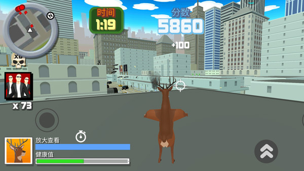 《疯狂的鹿大作战》是一款极具魔性的开放式世界手游,玩家可以在这个虚拟城市中随心所欲地展开破坏行动。游戏采用独特的物理引擎,让每一次撞击和破坏都充满真实感。你可以操控这只外表可爱却内心狂野的小鹿,使用各种夸张的武器在城市中横冲直撞。通过完成任务可以获得金币奖励,用于购买更强大的道具和装备。游戏还设置了丰富的隐藏要素和彩蛋,等待玩家去发掘。无论是想发泄压力还是寻找欢乐,这款游戏都能满足你的需求。