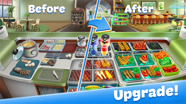 4、游戏可玩性极强,玩家可以不断升级自己的烹饪技能,解锁更多的食谱和食材,还能扩大餐厅规模,最终打造属于自己的美食帝国。
