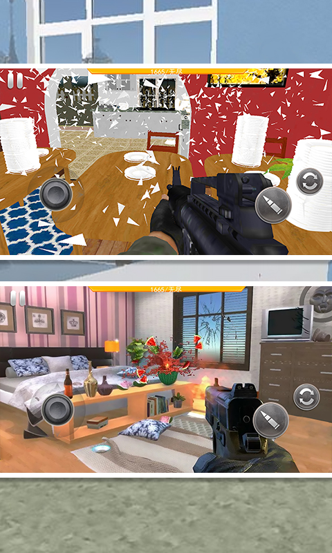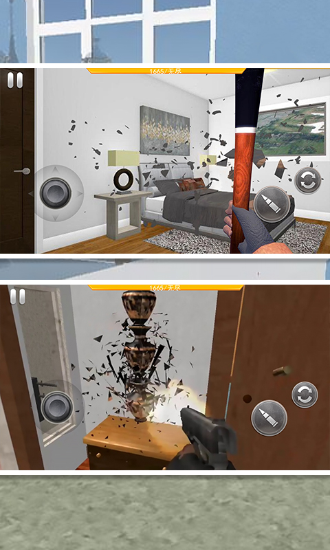 1、游戏提供丰富的武器库,包括各类枪支和爆破工具,玩家可以自由选择武器对室内设计进行破坏,享受碎片飞溅的视觉效果。