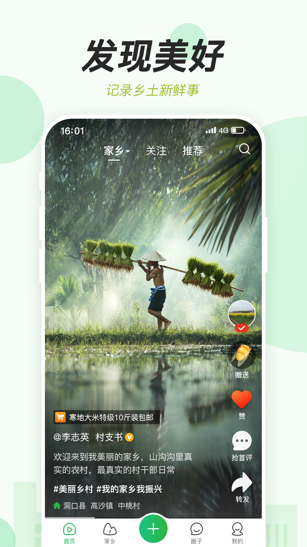 这是一个连接城乡的桥梁,通过全民参与的方式,将家乡独特的文化风貌、优质产品和服务传播到更广阔的平台。平台不仅致力于展示乡村的美丽风光,更希望通过吸引外部资源和人才,推动农村经济发展,实现共同富裕的美好愿景。在这里,每个人都能成为家乡的代言人,通过分享让更多人了解乡村的魅力。